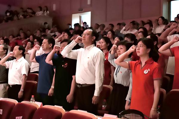 校党委委员、组织部(统战部)部长王涛领誓,带领全体党员重温入党誓词。