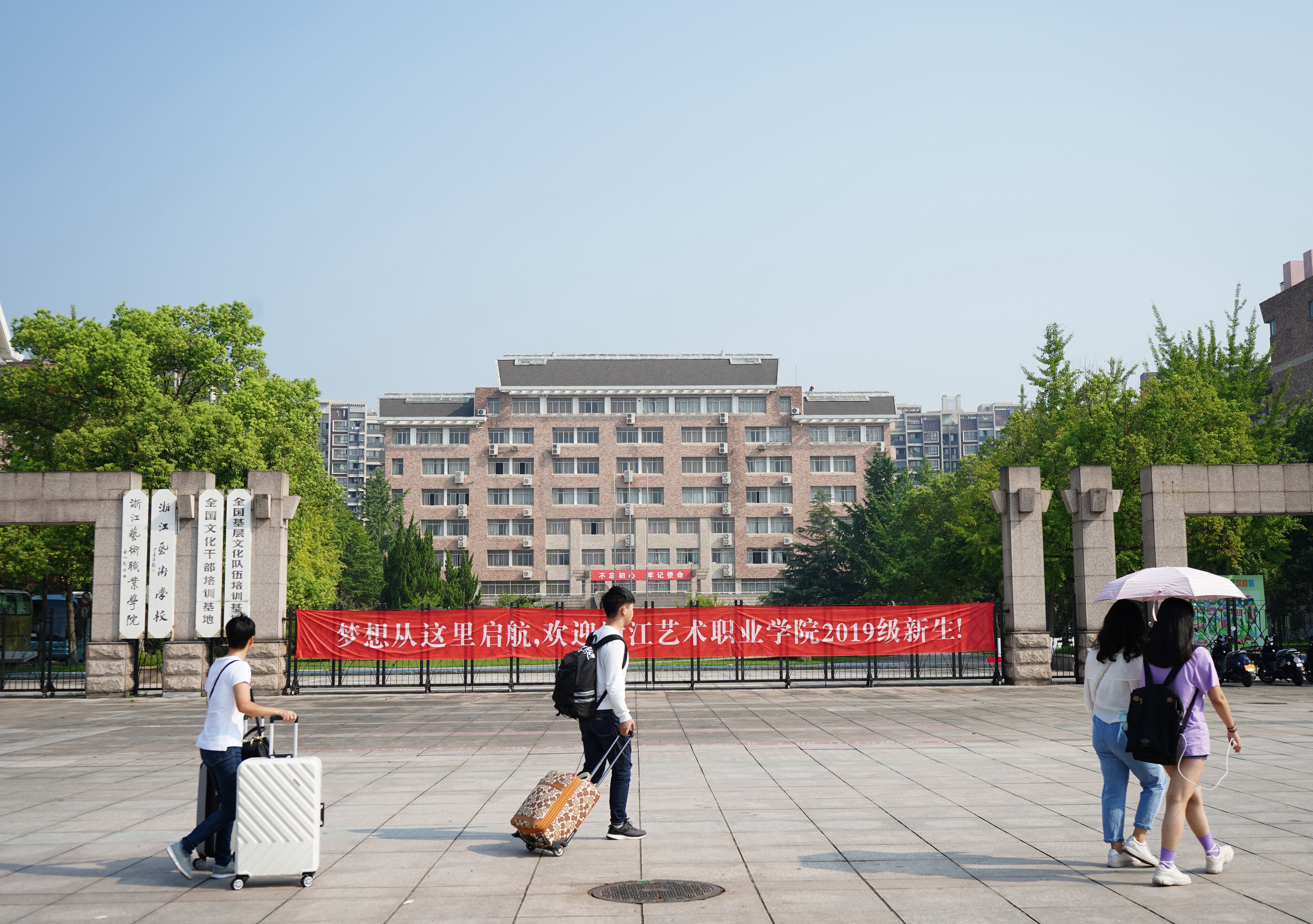 大学是人生的一个重要阶段,到大学报到是有意义的一天。有新生独自一人来报到的,有父母双双陪同送来的,还有哥哥姐姐陪同的,也有一家老小齐上阵的……今天的浙艺校园热热闹闹的,拖行李声、谈话交流声、欢笑声,每一张新生的笑脸都映衬出内心的喜悦。