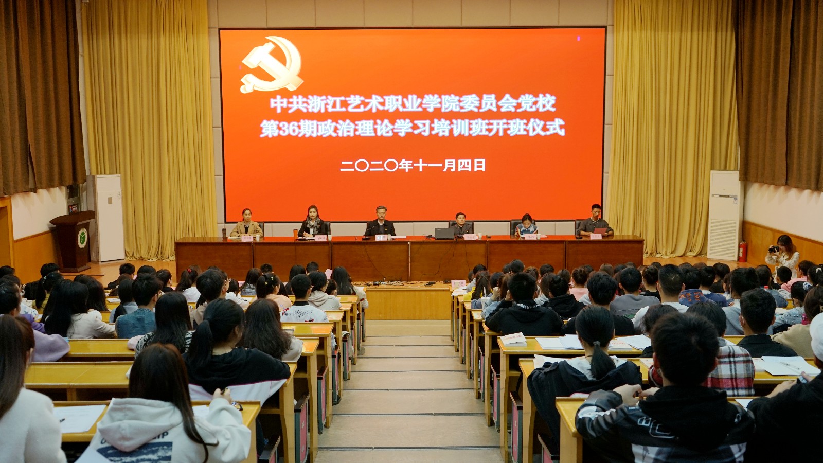 本期培训班学员代表、党校班长联席会主席、影视技术系班长陆梓炎代表全体学员发言,他郑重承诺,要树立正确的入党动机,端正政治理论学习态度、严格遵守党校规章纪律、认真完成学习培训任务,要坚定理想,珍惜来之不易的学习机会,扛起新时代青年的政治使命和社会担当。