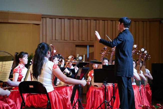古筝重奏《绿色的风》用五声调式结合流行音乐赋予弹性的节奏,令听众沉醉于绿意盎然的春风里;阮族合奏《啰唻》曲调源于温州当地民谣《叮叮当》,以五声纵合化和声体系与传统和声体系相结合,勾勒出不同于西洋乐器的独特东方和声线条。