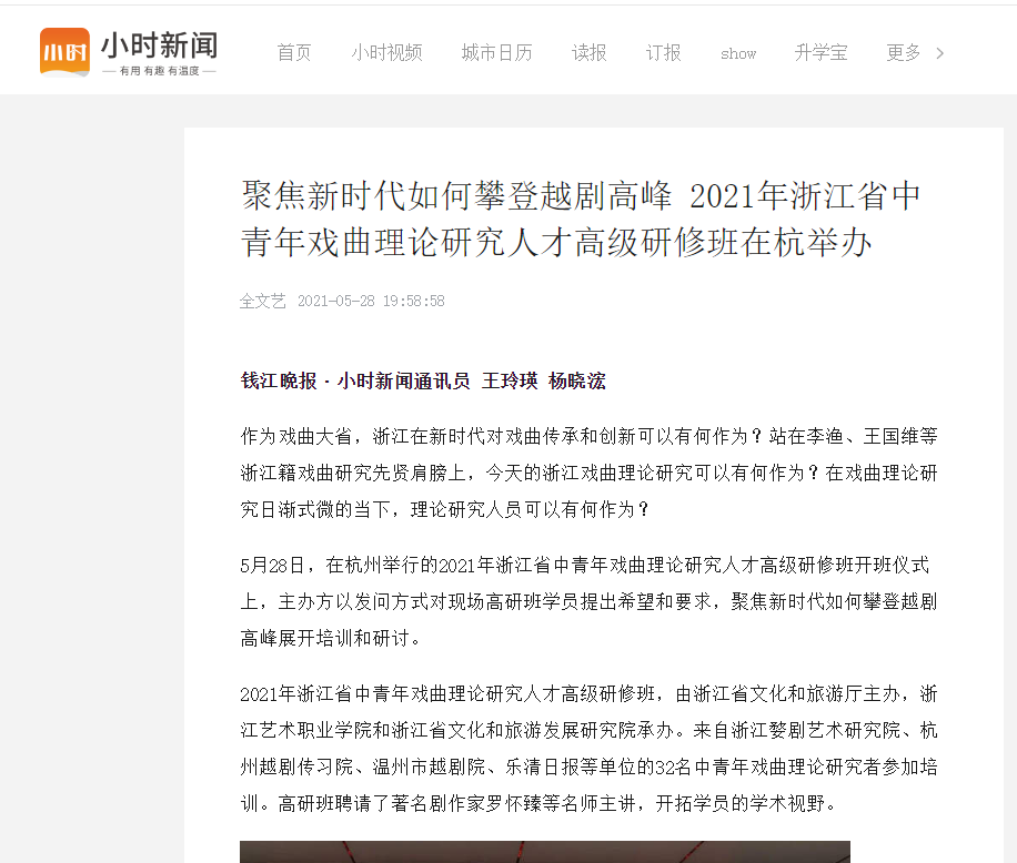 钱江晚报-小时新闻:聚焦新时代如何攀登越剧高峰 2021年浙江省中青年戏曲理论研究人才高级研修班在杭举办