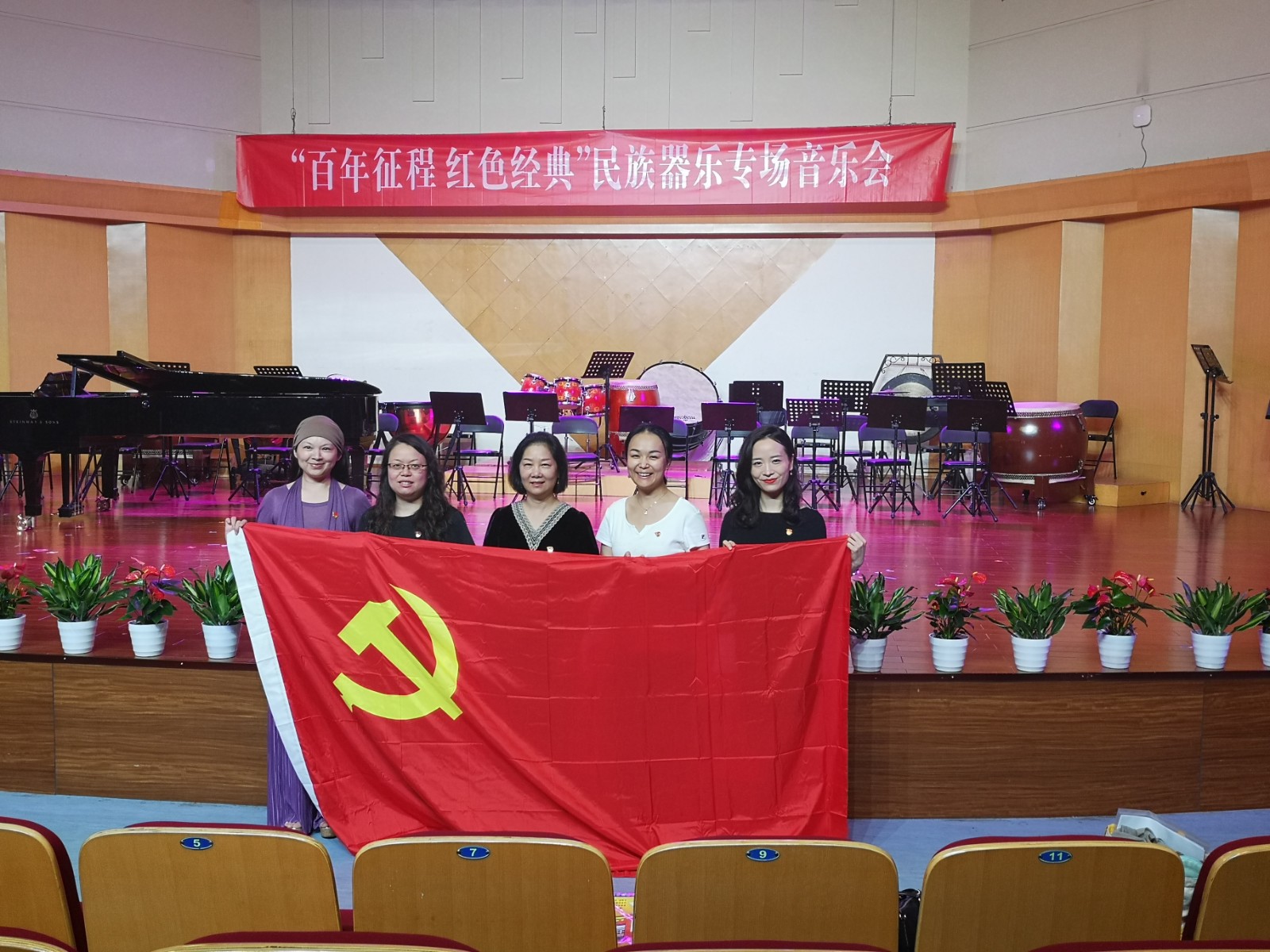 值此建党百年之际,音乐系师生还纷纷与党旗合影,同祝我们的党永葆活力,再创辉煌!
