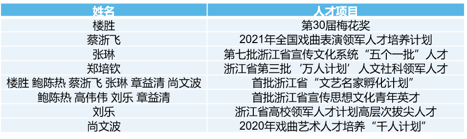 20余部作品入选“国家艺术基金项目”“浙江文化艺术发展基金”“浙江省舞台艺术创作重点题材扶持项目”“庆祝中国共产党成立100周年舞台艺术精品创作工程”等重大科研项目