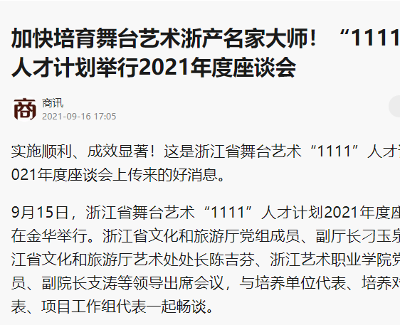 “运作有序 行动用力 落实有效”——浙江舞台艺术“1111”人才计划交出“期中”答卷