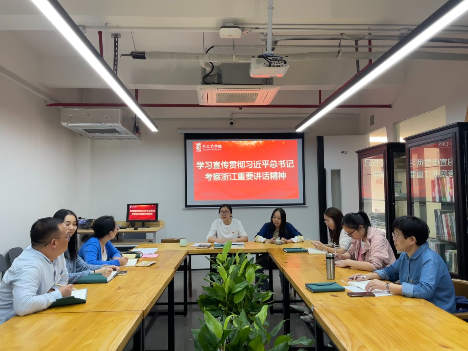 11月3日,手工艺学院组织全体教师重温习近平同志给我校建校 50周年校庆贺信精神的专题学习,深刻领会贺信和指示精神的丰富内涵、深邃思想和精神实质。钟黎提出,我校办学历史悠久,办学成果丰富,办学特色鲜明,一向重视文化艺术人才的培育,培养了一批批优秀的文艺界人才,各位教师和毕业生应当担负起自身的荣光和使命,紧扣文旅融合大趋势和文化艺术发展新业态,再创浙艺新辉煌。